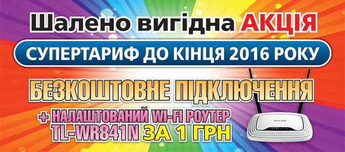 Новини: Супер-тариф на 2016 рік + роутер за 1 грн30.05.2016 | Переглядів: 10167