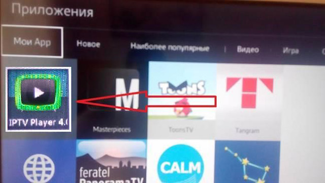 7. После того как "Приложения" откроются переходим в раздел "Мои App" где видим и запускаем установленный IPTV Player 4.0.