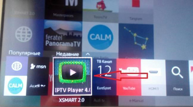 8. После первого запуска виджет IPTV Player 4.0 станет доступен в "Smart Hub" в разделе "Недавние".