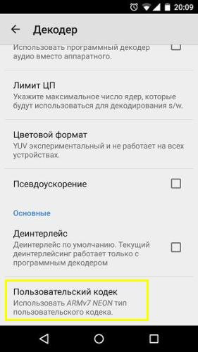 Установка кодека AC3При просмотре файлов в Кинозале пользователь может столкнуться с проблематикой следующего характера: во время проигрывания файла звуковая дорожка не будет воспроизводится. Это может быть связано с тем, что по умолчанию в MX Player отключена поддержка кодеков AC3. Исправляется данная ситуация по следующему алгоритму: 1. Открыть программу MX Player, “Настройки - Декодер”. Внизу меню настроек находим пункт “Пользовательский кодек”. В данном пункте указано, какой кодек необходимо использовать.